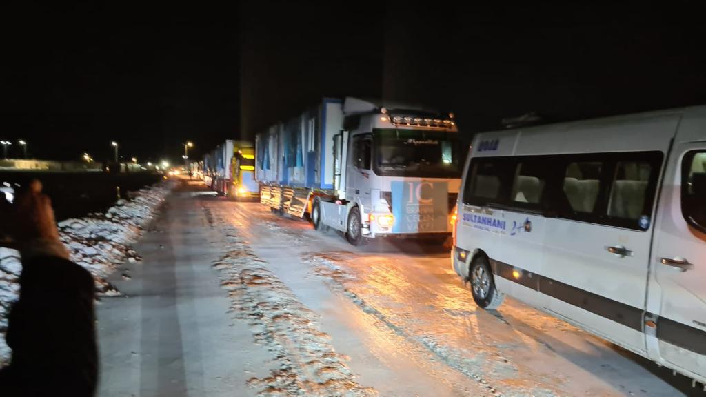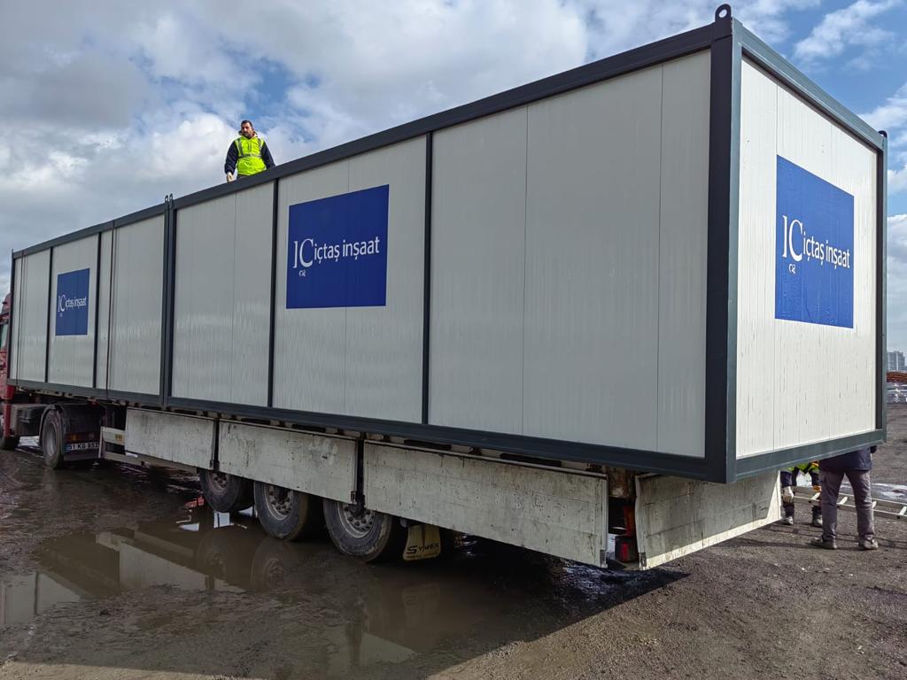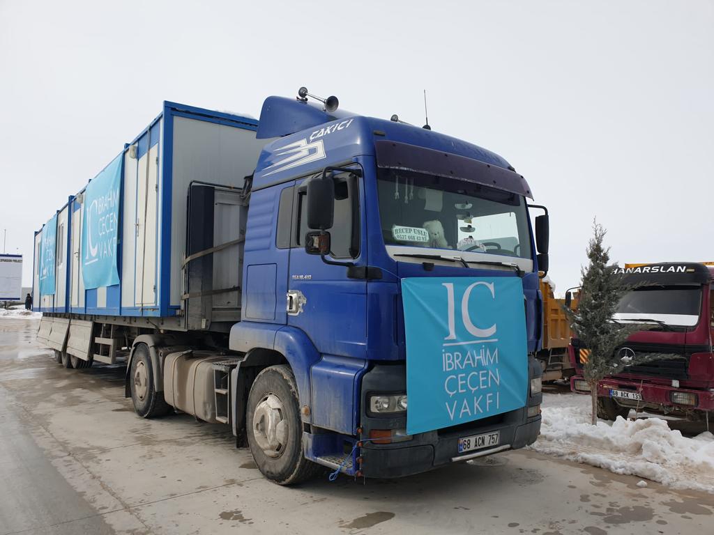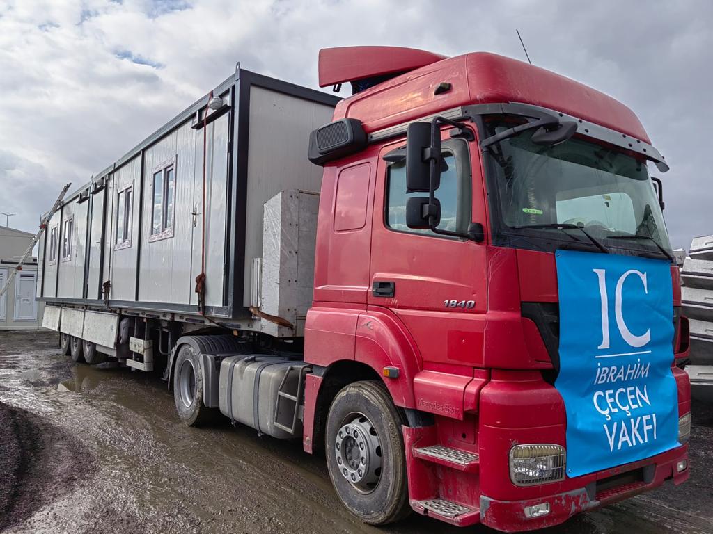 Projelerimizden geçici hastane ve konaklama için kullanılacak 5 adet konteyner hızla afet bölgesine sevk edildi. Bugün itibariyle de bölgede kurulan 7 adet sıcak yemek ünitesi ile hizmet vermeye başladık. Bununla birlikte, toplamda 7 TIR dolusu battaniye, ısıtıcı, eldiven, tıbbi ve hijyenik malzemeler ile çeşitli gıda ürünleri bölgeye gönderildi; yenileri de gönderilmeye devam ediyor.